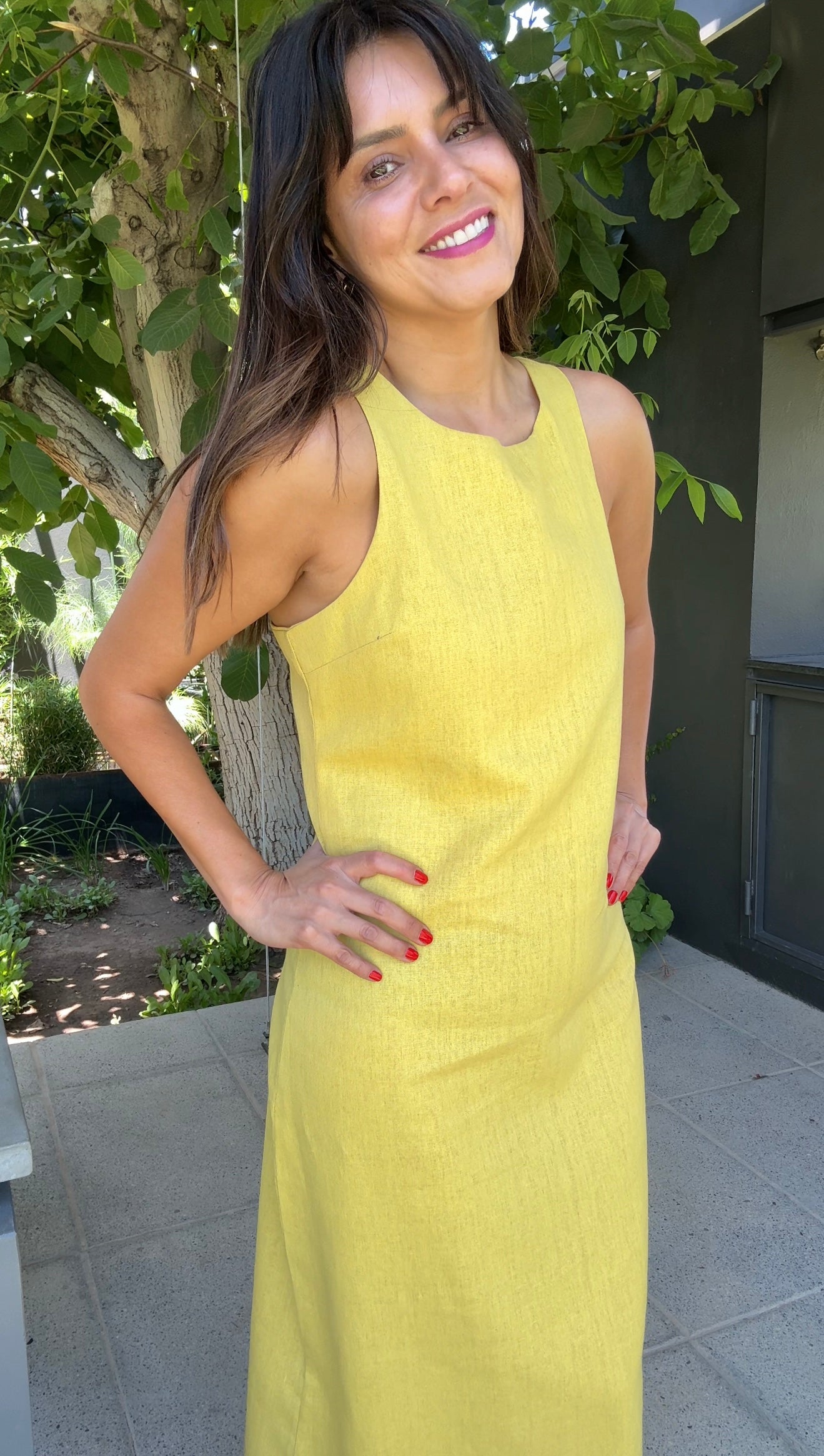 Vestido confeccionado en lino amarillo limón.
